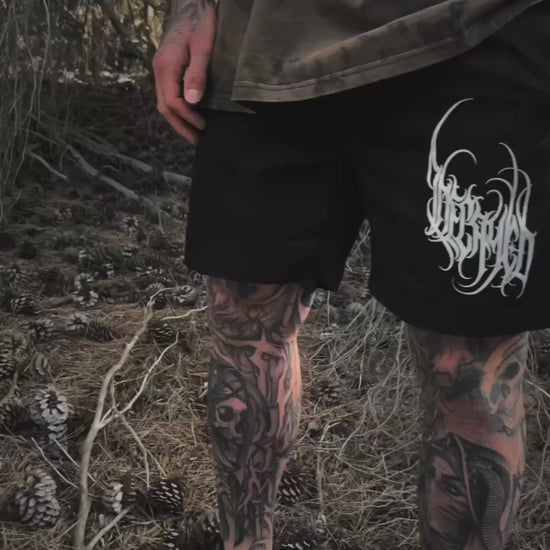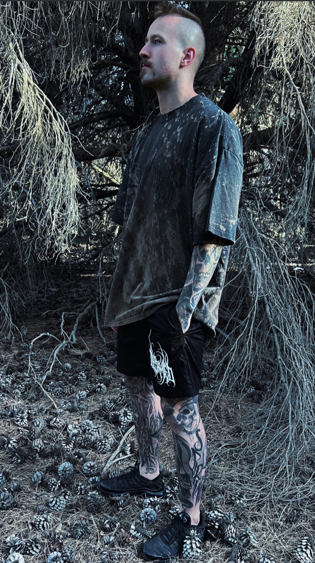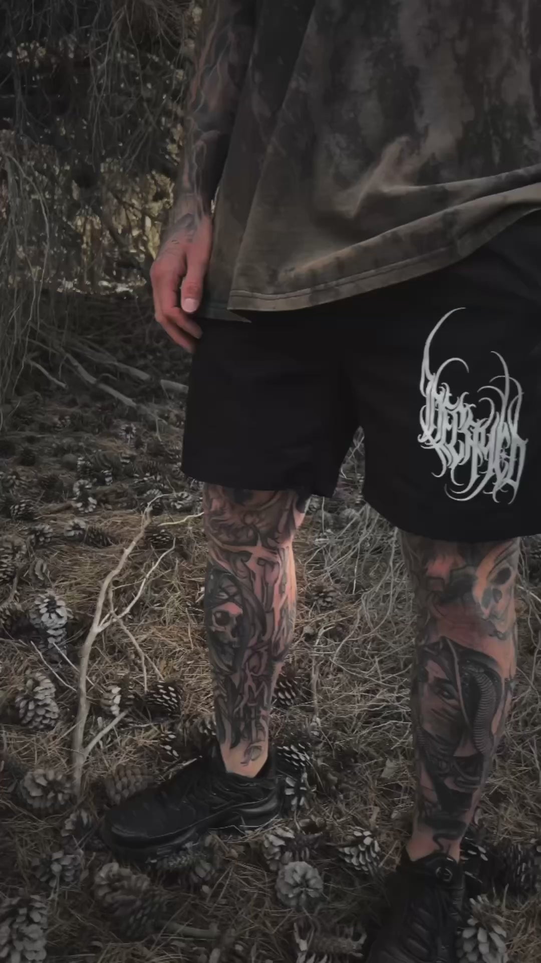 These regular fit, light weight Fabric shorts have a single DECAYED script print on left front panel.