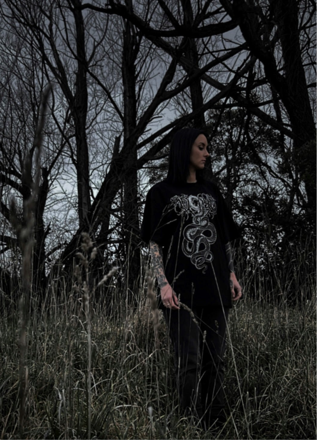 Our heavy weight snake tee has a single side print, A boxy fit, dropped shoulders, double needle hems, preshrunk to minimise shrinkage